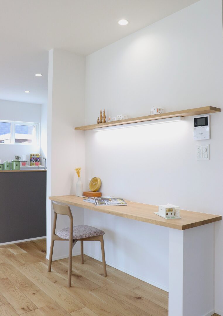 キッチンのすぐそばに設けたカウンターは、お子さまの勉強スペースにぴったり