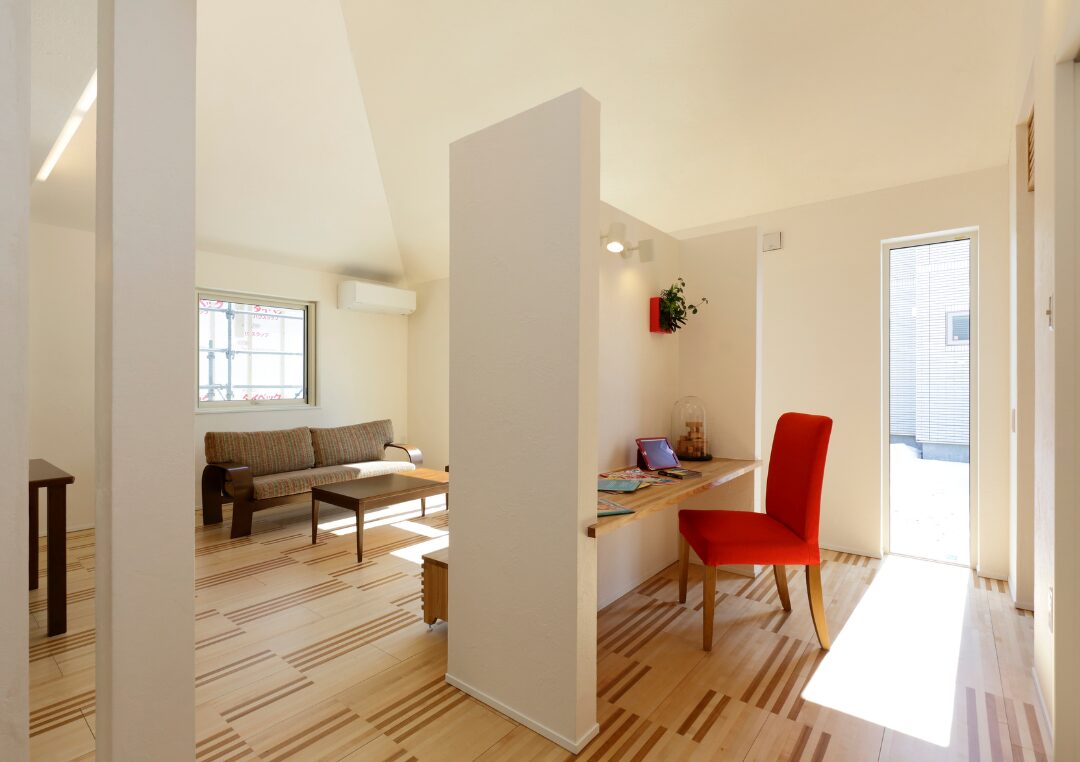 リビングのすぐそばに設けたフリールームとダイニング横のカウンターは、子育て世帯にうれしいつながりのある間取り。