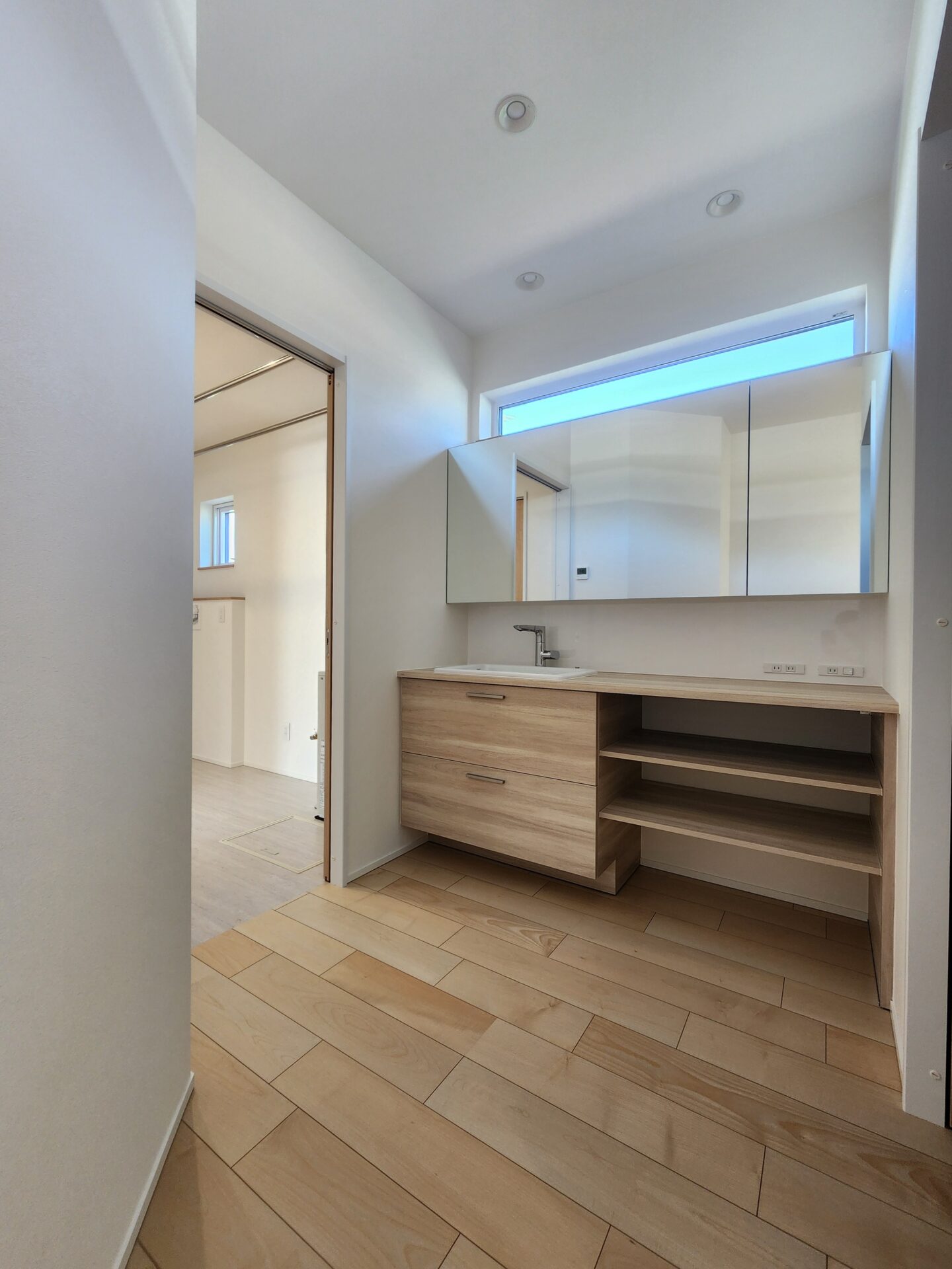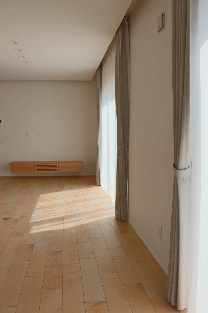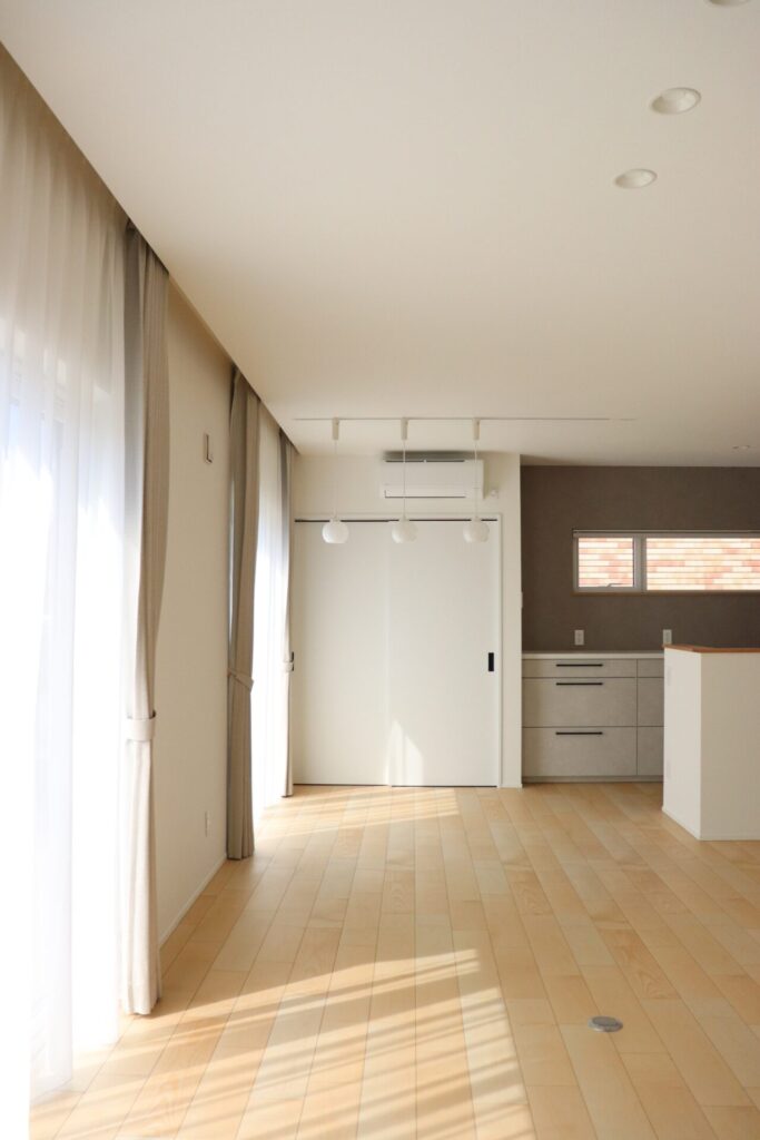 室内にもライトカラーを多く使用し、大きな窓から陽光が入り込む明るく開放感のある住宅に。