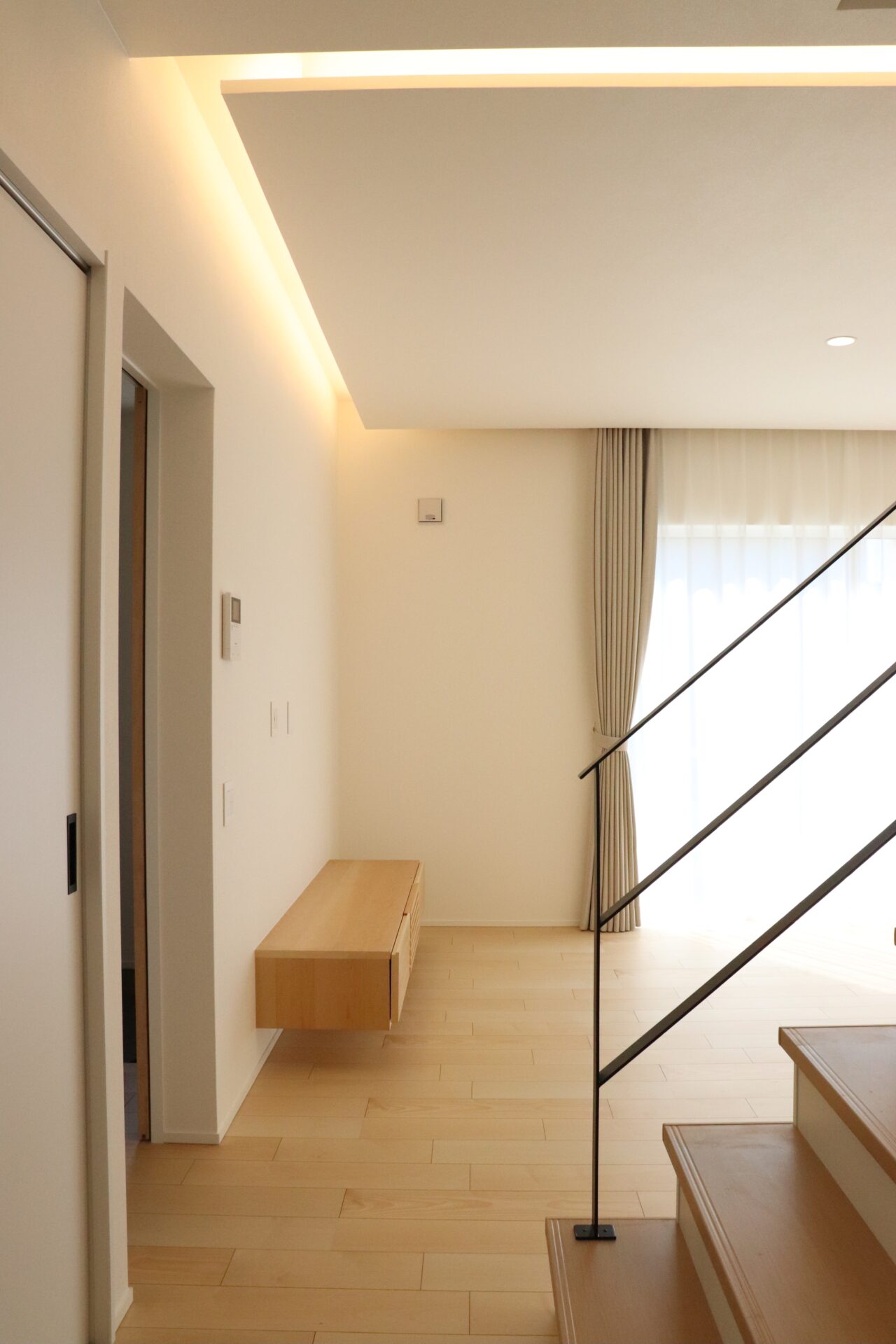 天井にL字型の間接照明を採用した、落ち着きと上質さを感じられるS様邸。