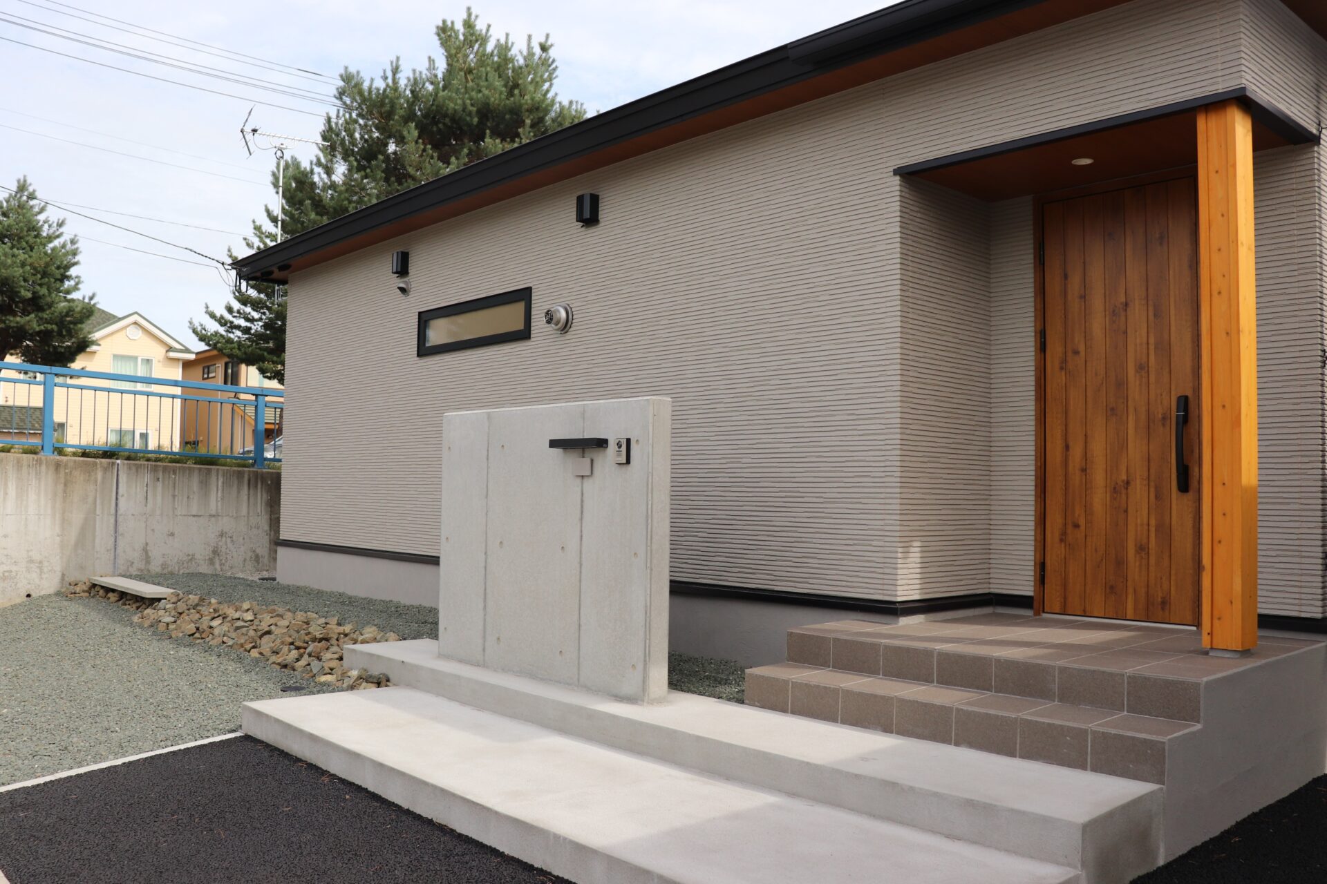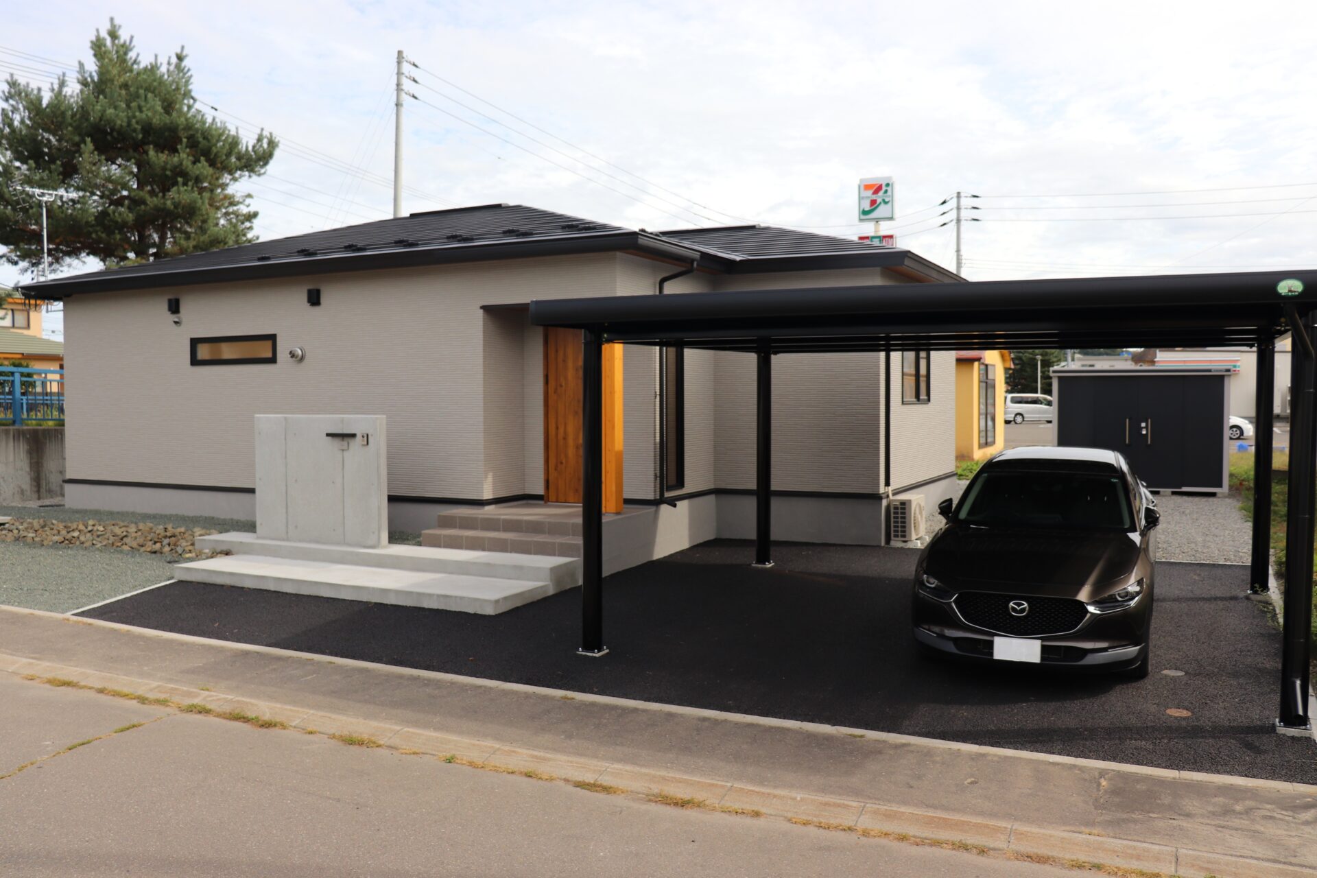重心を低く抑えた寄棟屋根が、凛とした佇まいを演出し、どの角度から見ても美しいバランスの外観が魅力のA様邸。